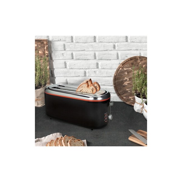 Il Tostapane Brandani Techno a fetta lunga è l'elettrodomestico ideale per tostare fette di pane di grandi dimensioni in modo uniforme e veloce. Il suo design moderno in acciaio inox lo rende un elemento d'arredo essenziale.